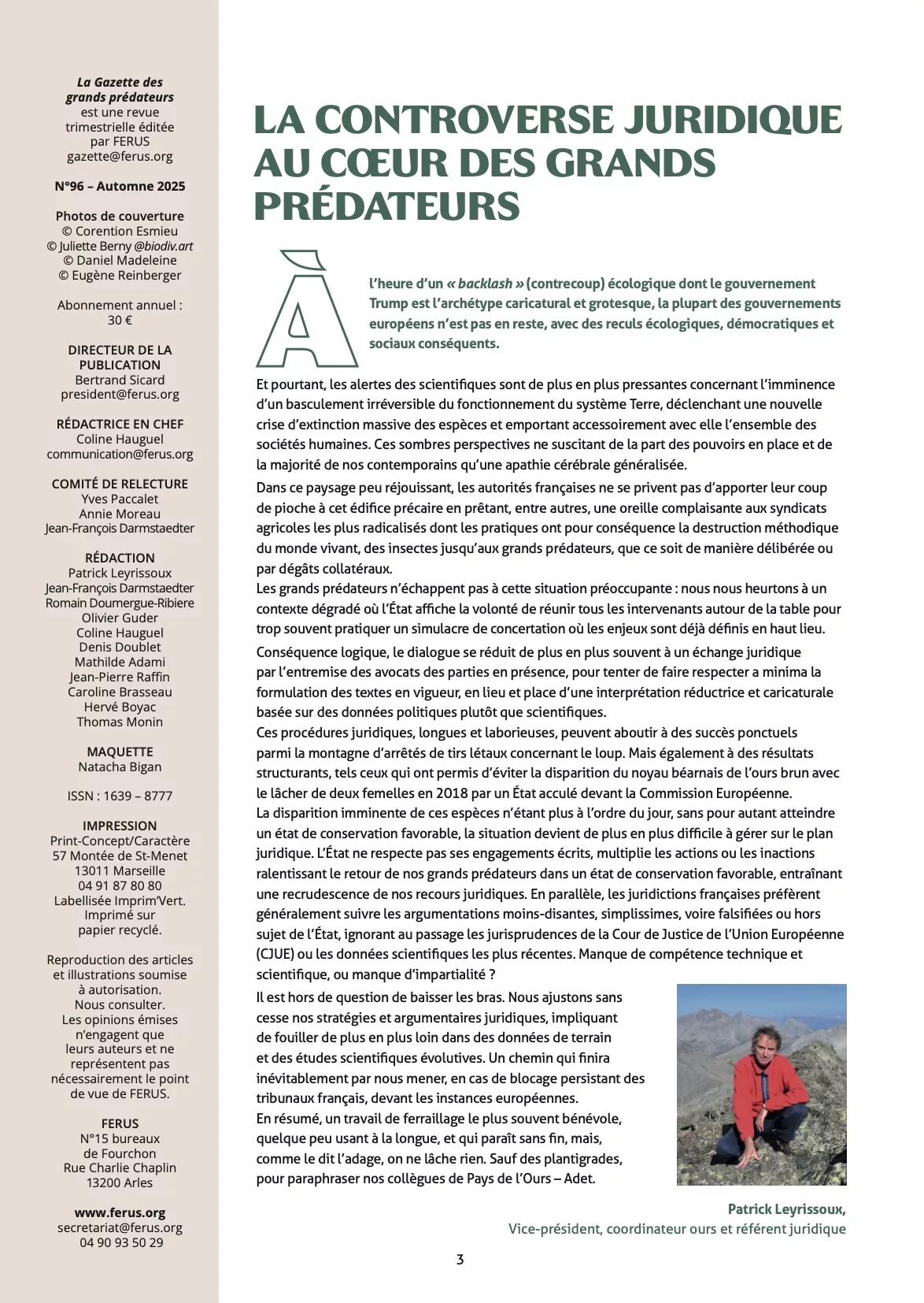 • Éditorial du magazine La gazette des grands prédateurs automne 2025