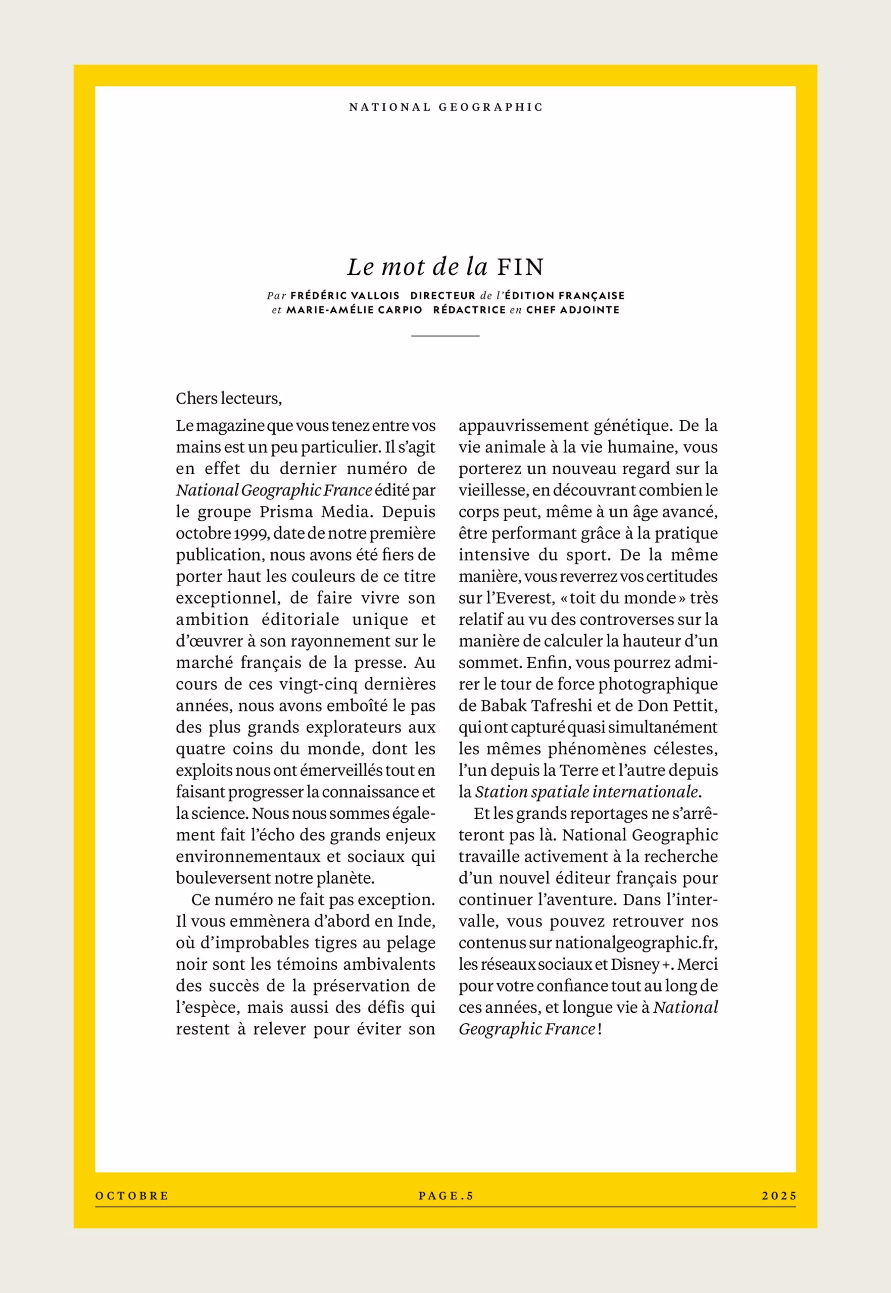 National Geographic octobre 2025 Magazine National Geographic Numéro 313 Date de sortie 01/10/2025 Commander le numéro S'abonner au magazine Sponsorisé Sommaire du numéro Retrouvez dans ce numéro : L’énigme du tigre noir Science : et si l’Everest n’était pas le toit du monde? Société : mieux vieillir grâce à la pratique intensive du sport Lire la suite du sommaire Édito du numéro Abou-Simbel Everest Hockey sur glace Jackie Kennedy Kenya Terre Tigre Vieillesse